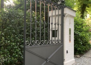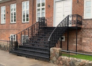 Für die Gemeinde Kronshagen habe ich diese Geländererhöhung für die zwei Treppenhäuser einer Grundschule geschmiedet und montiert. Neben der Erhöhung des Geländers im Rahmen einer Schulsanierung habe ich auch im unteren Bereich der Treppenstufen eine Durchtrittssicherung montiert.